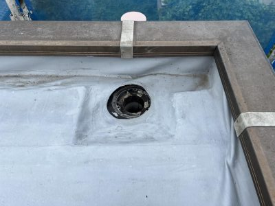 既存ゴムシート防水の浮き、剥がれ部分を切開、除去し、ゴムシートを貼ることで、補強します。