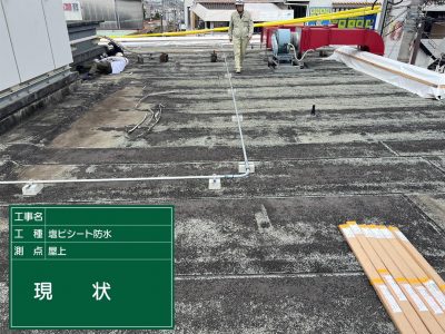 大東市扇町にある現場で塩ビシート防水が始まりました👷⛑️
